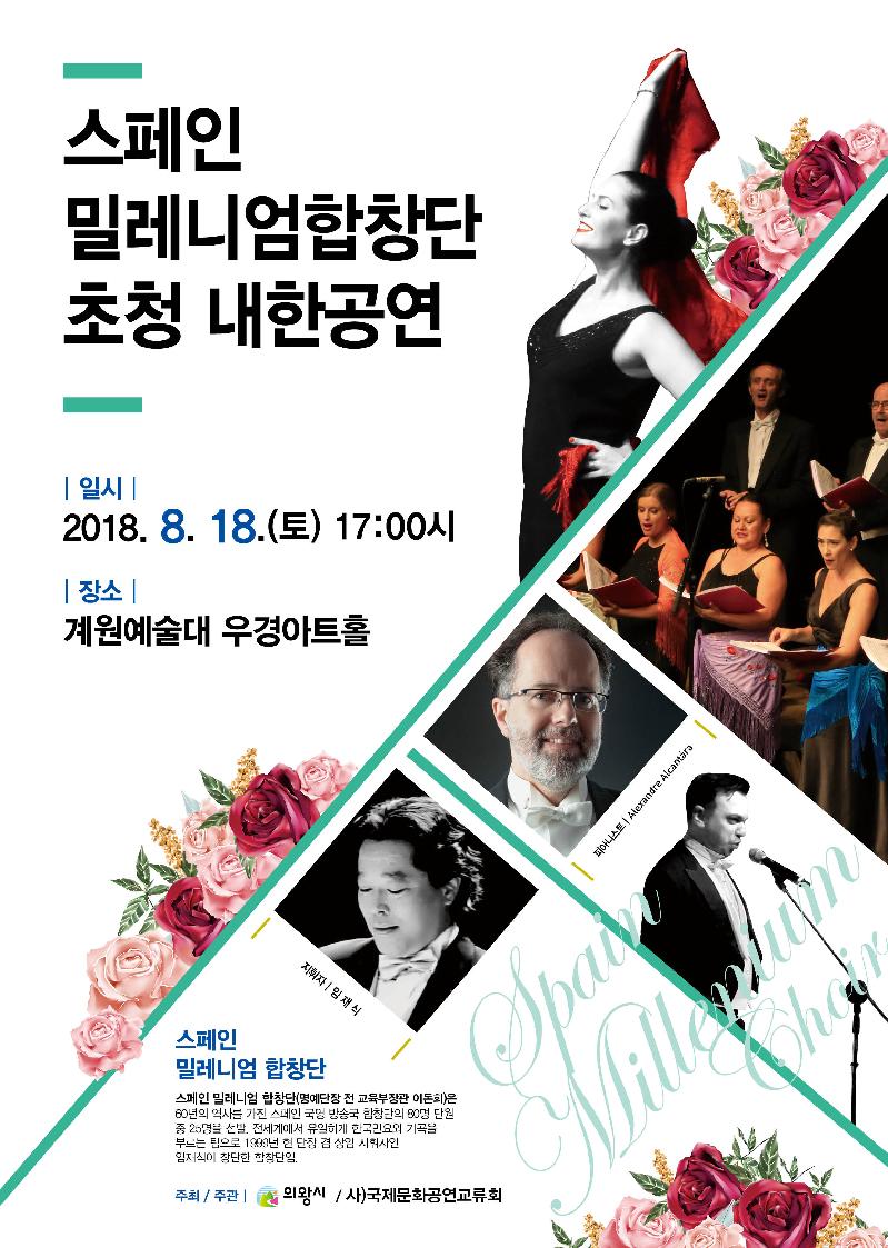 의왕시(시장 김상돈)는 오는 18일(토) 오후 5시 계원예술대 우경아트홀에서 스페인 밀레니엄 합창단 초청 내한 공연을 개최한다.