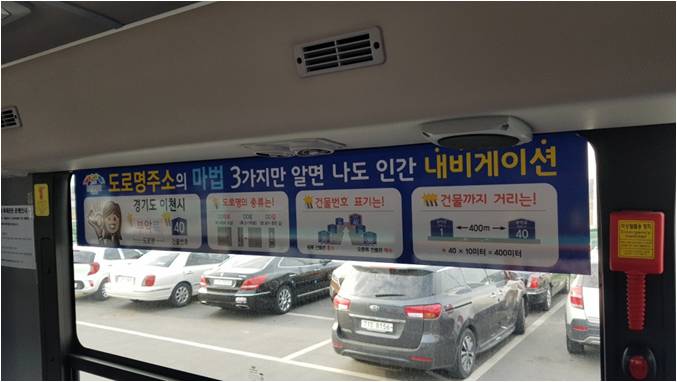 시는 2014년부터 법적 주소로 사용되고 있는 도로명주소 인식률을 높이기 위해 지역주민들의 주요 교통수단인 시내버스 내부에 ‘도로명 주소 부여원리’ 홍보도안(시트지)을 부착해 도로명주소 홍보에 적극적으로 나서고 있다.