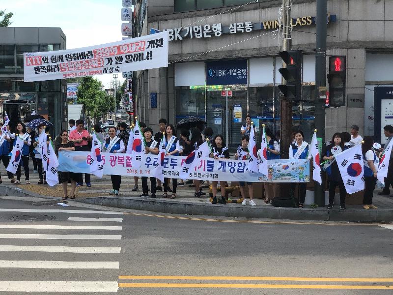 한국자유총연맹 인천서구지회(회장 강신덕)는 지난 14일 제73주년 광복절을 맞아 ‘나라 사랑 인천사랑 태극기 달기 운동’을 펼쳤다.