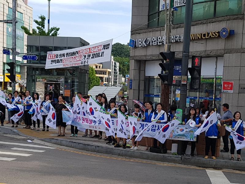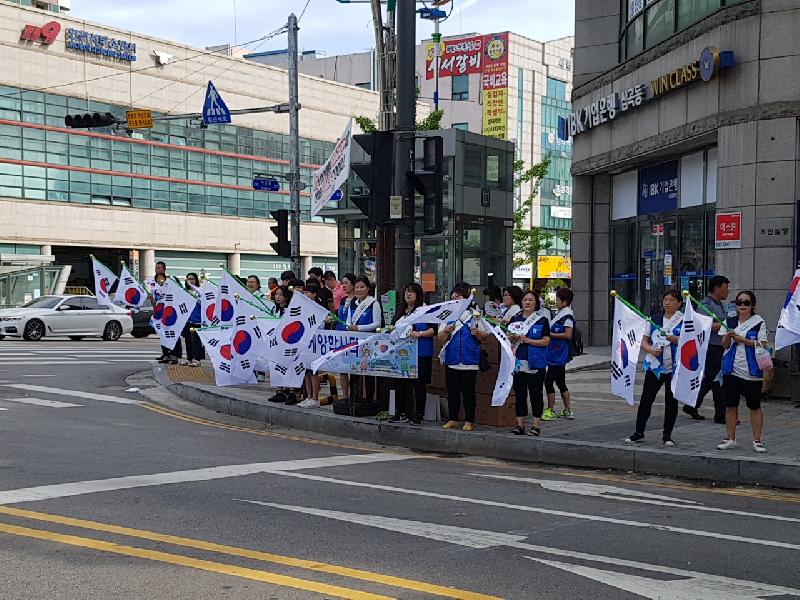 이날 한국자유총연맹 인천서구지회 회원 60여 명은 광복절을 맞아 선열들의 숭고한 독립정신을 계승·발전시키고, 국가발전에 국민적 역량을 집결시키고자, 서구청역 사거리에서 가정용 태극기 800조와 차량용 태극기 500조를 배부하고 서구민 태극기 달기 거리 캠페인을 전개했다.