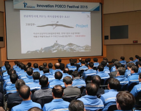 포스코(회장 권오준)가 지난 3일 고유의 혁신방법론인 POSTIM의 성과와 우수사례를 공유하는 ‘IP(Innovation POSCO) Festival 2015’를 개최했다.이날 행사는 '위기를 넘어 POSCO the Great로!'를 주제로 포항-광양-서울-송도를 영상으로 연결해 동시에 진행됐다. 포스코패밀리 임직원 1800여 명은 올 한 해 동안의 POSTIM(POSCO Total Innovation Methodology) 성과를 공유하고, 혁신을 거듭해 위기를 극복할 것을 한마음으로 다짐하는 시간을 가졌다.올해 행사는 냉철하게 현실을 인식하고 위기에 대해 공감함으로써 ‘고객’과 ‘현장’에 집중하고 POSTIM을 적극 활용한다면 현재의 어려움을 극복할 수 있다는 내용을 강조했다.참석자들은 포스코·그룹사·해외법인·외주파트너사가 추진하고 있는 △PSS+(POSCO Six Sigma Plus) △QSS+(Quality Stability Safety Plus) △SWP(Smart Work Place) 등 POSTIM 구성요소별 성과 및 우수사례를 공유했다.이어 열린 우수 프로젝트 아이디어 경진대회에서는 수익성 향상에 기여할 수 있는 창의적인 아이디어가 발표됐다. 참석자들은 발표를 듣고 즉석 평가하면서 ‘누구나 훌륭한 아이디어를 낼 수 있다’는 데 공감했다.IP페스티벌의 꽃인 시상식에서는 올 한 해 POSTIM을 통해 우수한 성과를 낸 조직과 개인을 포상했다. 수상대상에 이름을 올린 총 35건 중 고수익PO증산체제구축PJT팀은 특별보상 제2호에 선정되는 영광을 안았다.이날 행사 마지막에서 참석자들은 어떤 조직이든 위아래가 같은 목표를 향해 가면 승리한다는 뜻의 '상하동욕자승(上下同欲者勝)' 정신을 되새기며 위기를 돌파하자는 의지를 다졌다.권오준 회장은 이날 강평을 통해 "우리 모두 포스코 고유의 혁신방법론인 POSTIM을 활용해 하나의 언어로 소통하고 끊임없이 혁신해야 한다"고 말하고 위기 극복을 위해 한마음이 되어 혁신활동을 펼쳐줄 것을 당부했다