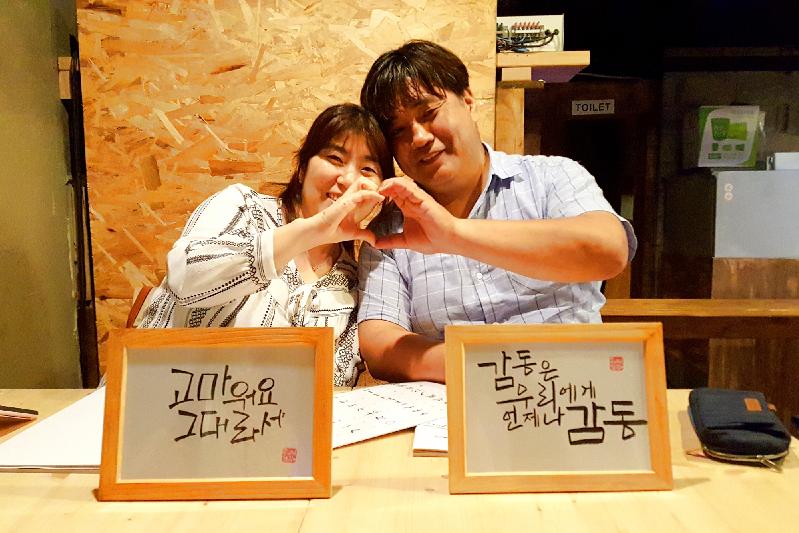 | 퇴근학습길 프로그램으로 함께 캘리그라피를 배우는 이노기 씨 부부 |
