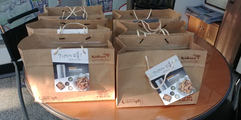 동두천시 소요동 행정복지센터(동장 김대식)는 지난 16일 교촌치킨 지행점에서 기탁한 치킨 10마리를 한부모, 조손가정 9가구에 전달했다고 밝혔다.
