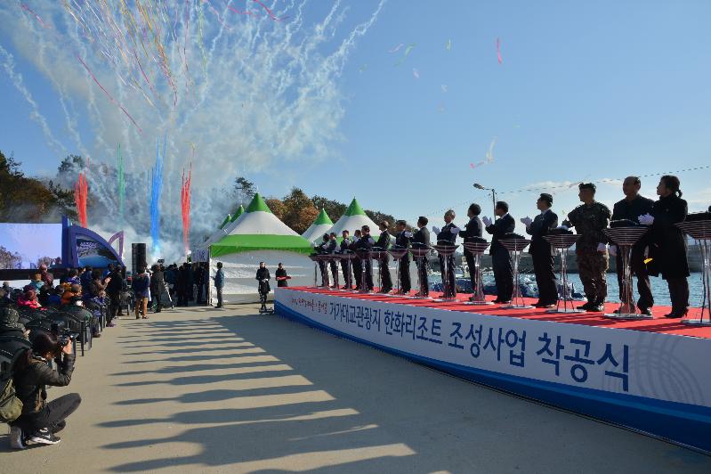 지난 4일 거제시 장목면 농소리에서 쌀쌀한 날씨에도 불구하고 지역주민과 한화 관계자 등 1,000여명이 참석한 가운데 거가대교 관광지 조성사업 착공식이 성황리에 개최되었다.
