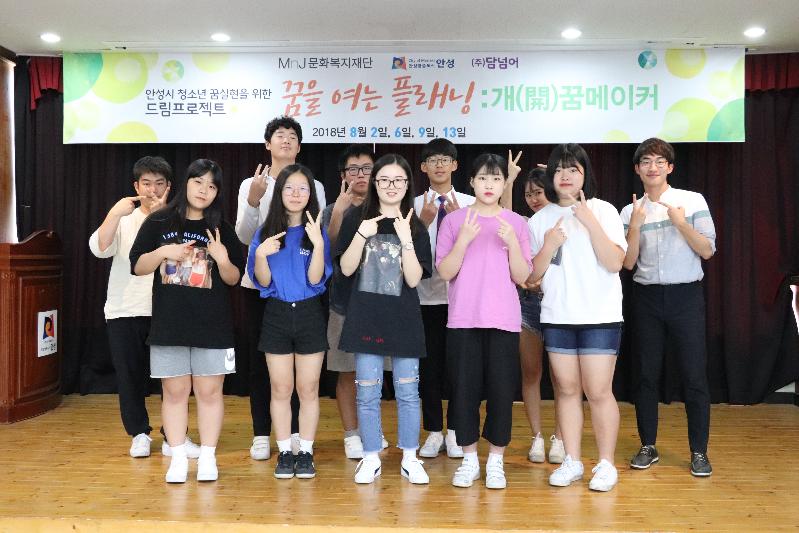 이번 프로그램은 안성시가 MnJ 문화복지재단의 재정지원과 (주)담넘어의 사업진행 등 업무협약을 통해 관내 만 15세~18세 청소년들이 꿈을 포기하는 일이 없도록 다양한 꿈 실현을 지원하는 드림프로젝트로 진행되었다.