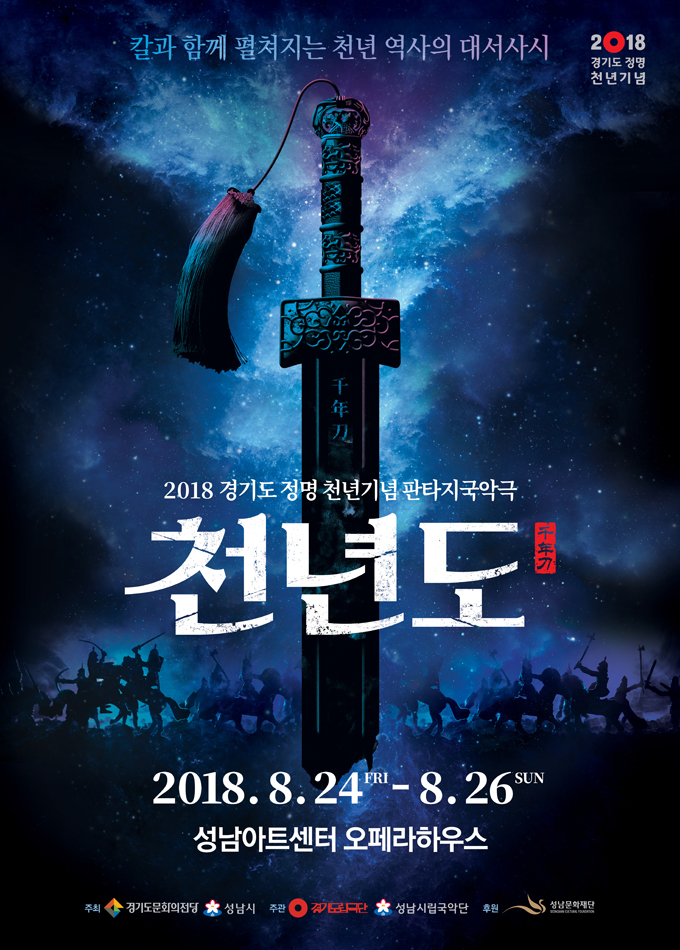 경기도 정명 천년을 기념하여 경기도문화의전당과 성남시가 공동주최하는 판타지국악극 가 2018.08.24(금)~26(일) 성남아트센터 오페라하우스에서 열린다.