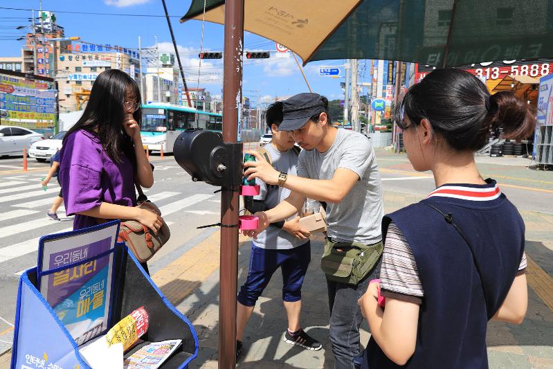이번 캠페인은 폭염 속 시민들에게 시원한 그늘을 제공하고 싶은 아름다운 마음을 전달하고자 기획된 것이다. 청소년·청년활동가들은 오전 시간을 활용해 신천·대야동 인근 횡단보도에 설치되어 있는 그늘막 쉼터에 양산꽂이를 설치했다. 설치한 양산들은 시민들이 기부한 것이다.