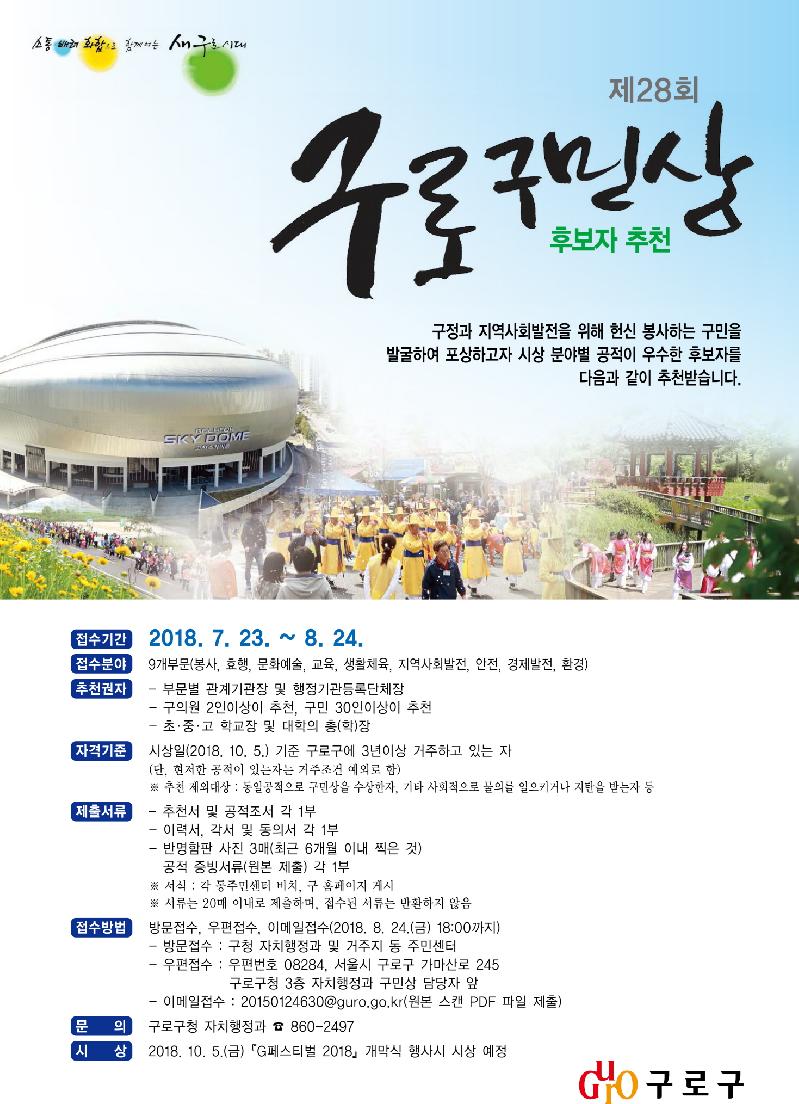 구로구가 제28회 구로구민상 후보자를 24일까지 모집한다.