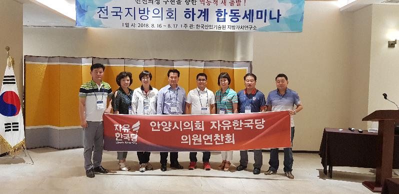 자유한국당은 제7대 안양시의회 여당에서 제8대에는 야당으로 역할이 바뀌었는데 이번 연찬회에서는 2018년 제2차 전국지방의회 하계 합동세미나의 참석을 통해서 제242회 정례회를 비롯한 제8대 의회의 전반적인 의정활동에 대비한 결산 및 조례안 심사, 행정사무감사 및 조사 실전기법 등 전문성을 향상하고, 의정활동 관련 사례연구와 현안사항 토의를 통해 선진의정 구현을 위한 의회의 역량강화에 초점을 맞췄다.