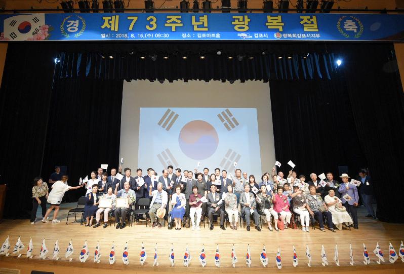 김포시(시장 정하영)가 제73주년 광복절을 맞이해 지난 8월 15일 김포아트홀에서 광복회원과 유가족 및 기관단체장, 시민 등이 참석한 가운데 「제73주년 광복절 경축식」을 성황리에 개최했다.