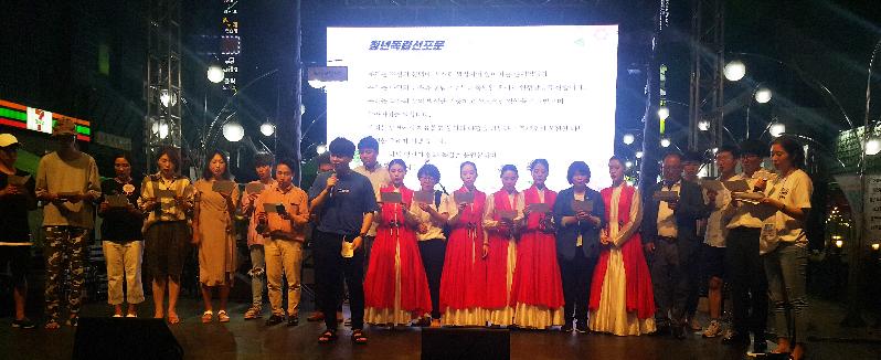 | 중앙무대에서 참가자들이 청년독립선포문을 발표하고 있다. |