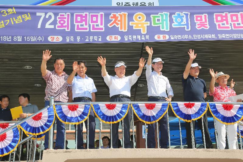 『제73주년 광복절기념 및 제72회 일죽면민체육대회』가 8월 15일(월) 오전9시 30분, 일죽면 송천리 소재 일죽·중고등학교 교정에서 우석제 안성시장을 비롯 하여 김학용 국회의원, 신원주 안성시의회의장, 도의원, 시의원, 각급 기관단체장과 체육회 등 1천여명의 주민들이 참석한 가운데 성황리에 개최되었다.