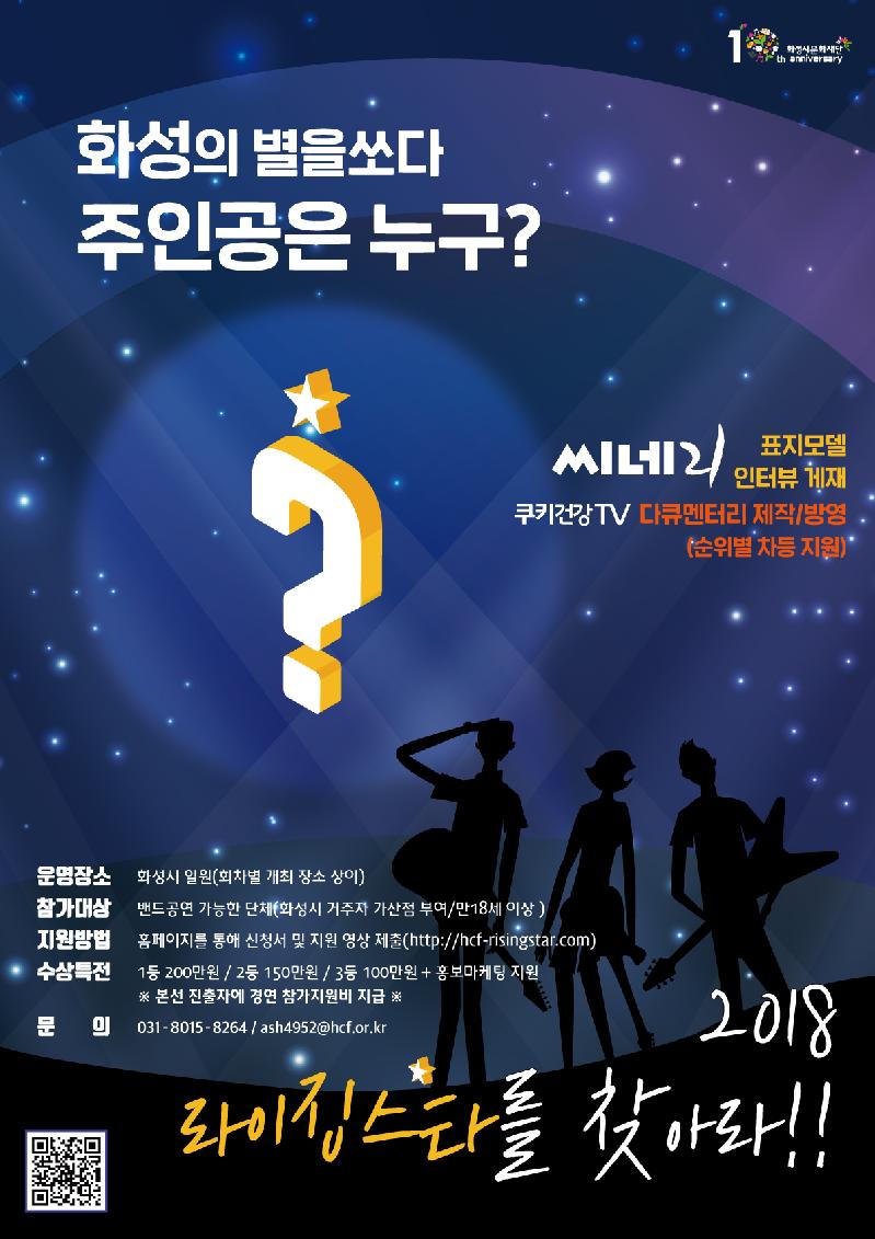 참가신청은 ‘라이징스타를 찾아라’ 홈페이지(www.hcf-risingstar.com)를 통해 오는 8월 26일 24시까지 접수가능하며, 경연대회는 9월 29일부터 매주 토요일마다 4주에 걸쳐 진행된다.