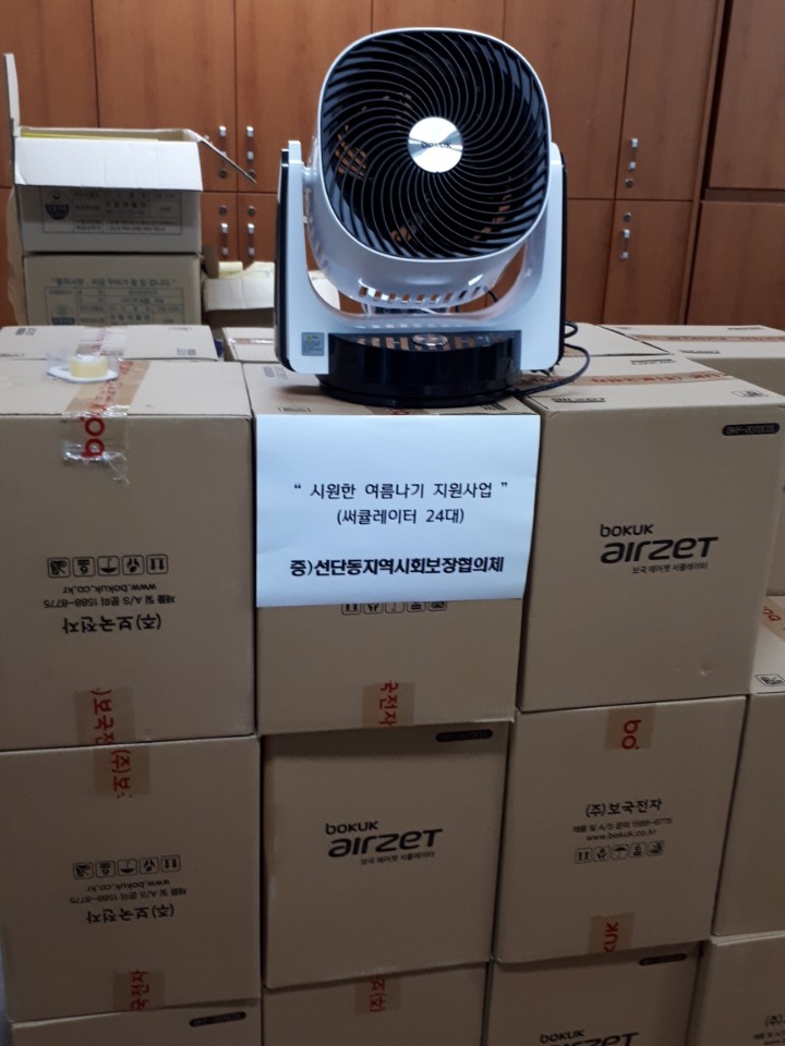 포천시 선단동 지역사회보장협의체(공공위원장 김재완 동장, 민간위원장 김진성)는 17일 서큘레이터 24대를 저소득 독거노인과 중증장애인 세대에게 전달했다.