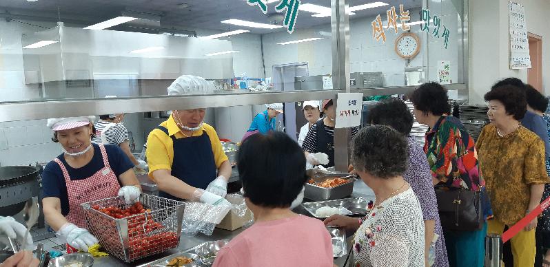 이번 식사 대접은 어르신들이 마지막 더위를 무사이 이겨내고 건강한 여름을 보내기를 바라는 마음으로 마련된 것이다. 특히 이날 삼계탕은 여성노인회관에서 어르신들을 위해 여러 가지 약재를 넣어 정성스럽게 만들었으며, 삼계탕과 더불어 향긋한 오이 무침, 증편, 과일 등 어르신들 건강을 위한 다양한 음식도 함께 제공하였다.
