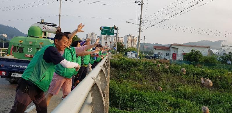 파주시 파주읍 새마을 지도자부녀회는 지난 15일 새마을 지도자부녀회, 주민자치위원회, 실버 경찰대 등 30여명이 참석한 가운데 부곡리 갈곡천, 연풍리 갈곡천 등 3개의 다리에서 수질정화를 위한 ‘흙공 던지기 행사’를 진행했다.
