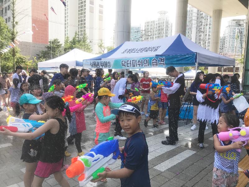 특히 이번 축제의 하이라이트인 물총 이벤트는 호계청소년문화의집 안양P.S.Y꿈의학교 청소년들이 직접 기획하여, 해적분장과 문어선장 탈을 쓰고 축제에 참여한 청소년들을 대상으로 시원한 물총전쟁을 벌여 지역 주민들의 뜨거운 호응을 얻을 수 있었다.