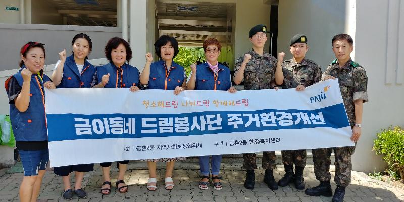 올해 6월부터 시작된 「금이동네 드림봉사단 주거환경개선」은 금촌2동 지역사회보장협의체(위원장 이재훈)가 추진하는 특화사업으로 사회단체와 독거노인가구를 1:1로 결연하고 월 1회 이상 지속적으로 주거환경개선 서비스를 지원하는 사업이다.