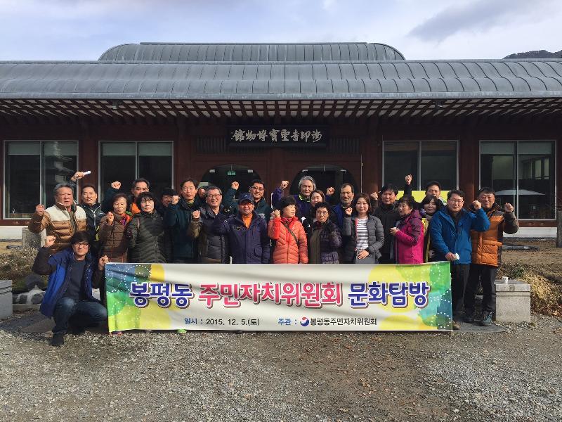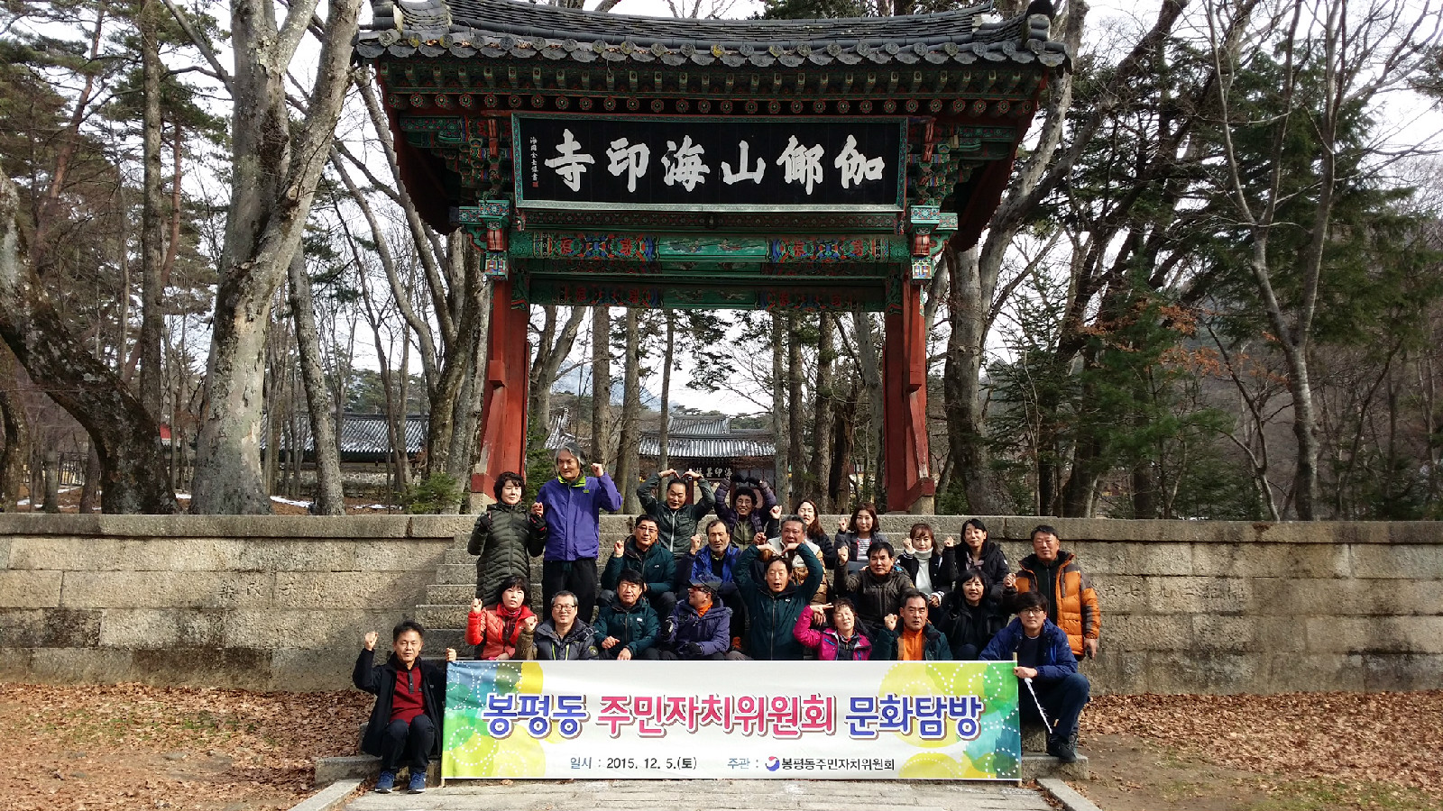 봉평동(동장 추영석)에서는 지난 5일(토) 봉평동 주민자치위원회(위원장 김영세) 주관으로 봉숫골 벚꽃축제, 경로위안잔치 등 한 해 동안 크고 작은 행사에 적극적으로 협조하여 준 자치위원들의 노고를 격려하고, 타 지역 문화 탐방을 통해 자치역량을 강화하며 더불어 회원 간 소통과 화합의 장을 마련하기 위하여 합천, 의령군 일원에서 문화탐방 행사를 가졌다.