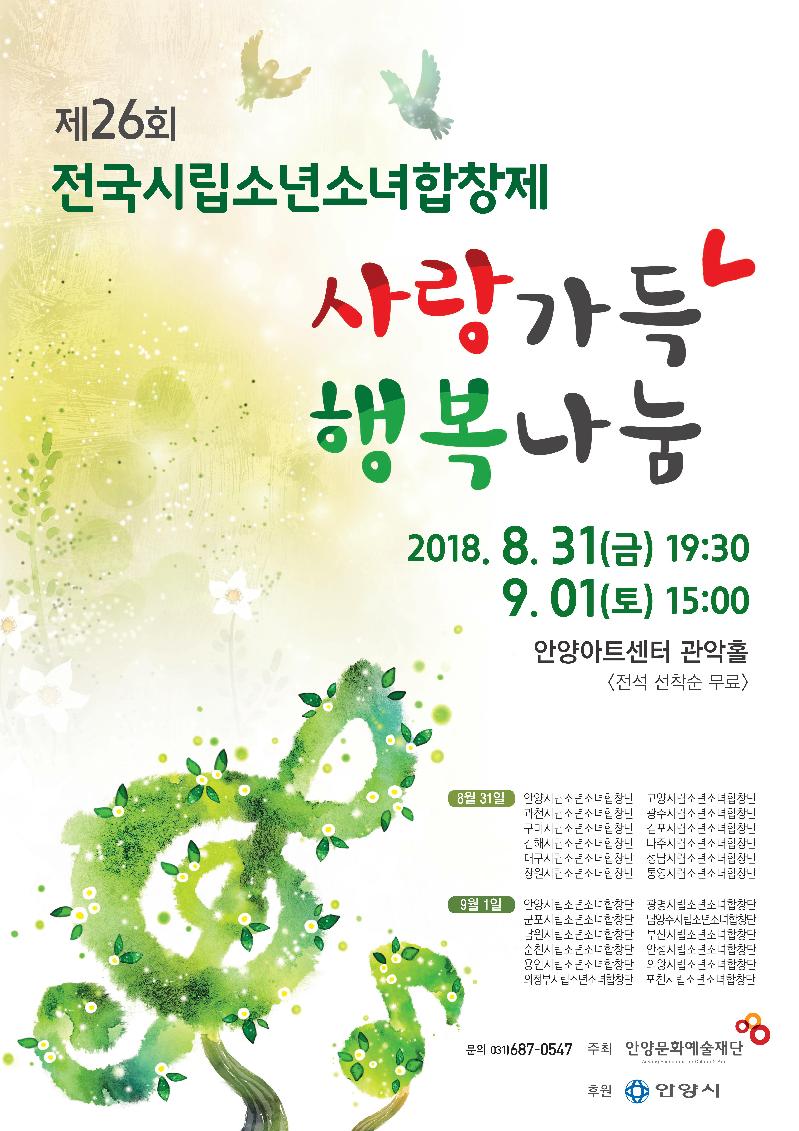 전국시립소년소녀 합창제는 1992년 시작되어 매년 수도권과 지방 도시에서 개최되는 합창제로 전국의 시립소년소녀 단원들이 합창을 통한 문화예술 교류의 장을 만들고 합창음악의 발전을 위한 합창제이다. 2018년 현재 26회에 이르고 있으며 안양시에서는 1999년 제8회 전국시립소년소녀합창제를 개최 후 올해 제26회로 두 번째다.