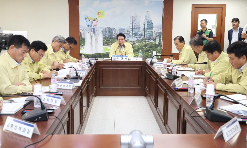 안양시(시장 최대호)는 23일 시청 재난상황실에서 5급이상 간부공무원을 대상으로 제19호 태풍 솔릭에 대비해 긴급 대책회의를 개최했다.