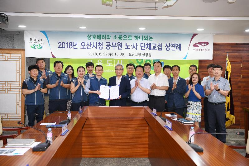 곽상욱 오산시장은 “노사는 대립과 갈등의 관계가 아니라 시민의 희망과 행복을 위해 함께 노력하는 협력과 배려의 동반자”라며 “노사가 상생․협력 관계를 만드는 단체교섭이 되도록 노력하고 합의된 사항을 법령과 예산 범위 안에서 적극적으로 지원하겠다.”고 말했다.