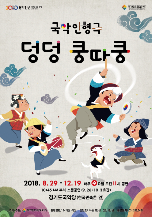현대인형극회(예술감독 조용석)가 연기하고 경기도립국악단이 연주하는 「덩덩 쿵따쿵」은 8월 29일부터 12월 19일까지 매주 수요일 오전 11시 경기도국악당에서 열린다.