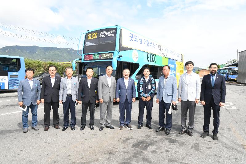 이에 시는 이용객의 더욱 빠르고 안전한 버스 이용을 위해 지난 8월 6일 1대를 증차한 데 이어 2층 버스를 투입, 이날 행사에서 첫 선을 보였다.
