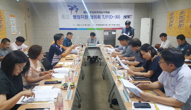 김용범 시 문화국장 주재로 진행된 이번 회의는 부천소방서, 원미경찰서, 부천문화재단, 부천도시공사, BBIC사무국 관계자와 행정지원 관계부서가 참석한 가운데 대회 준비 경과보고, 행정지원 사항 점검, 대회 홍보방안 논의 등으로 진행됐다.