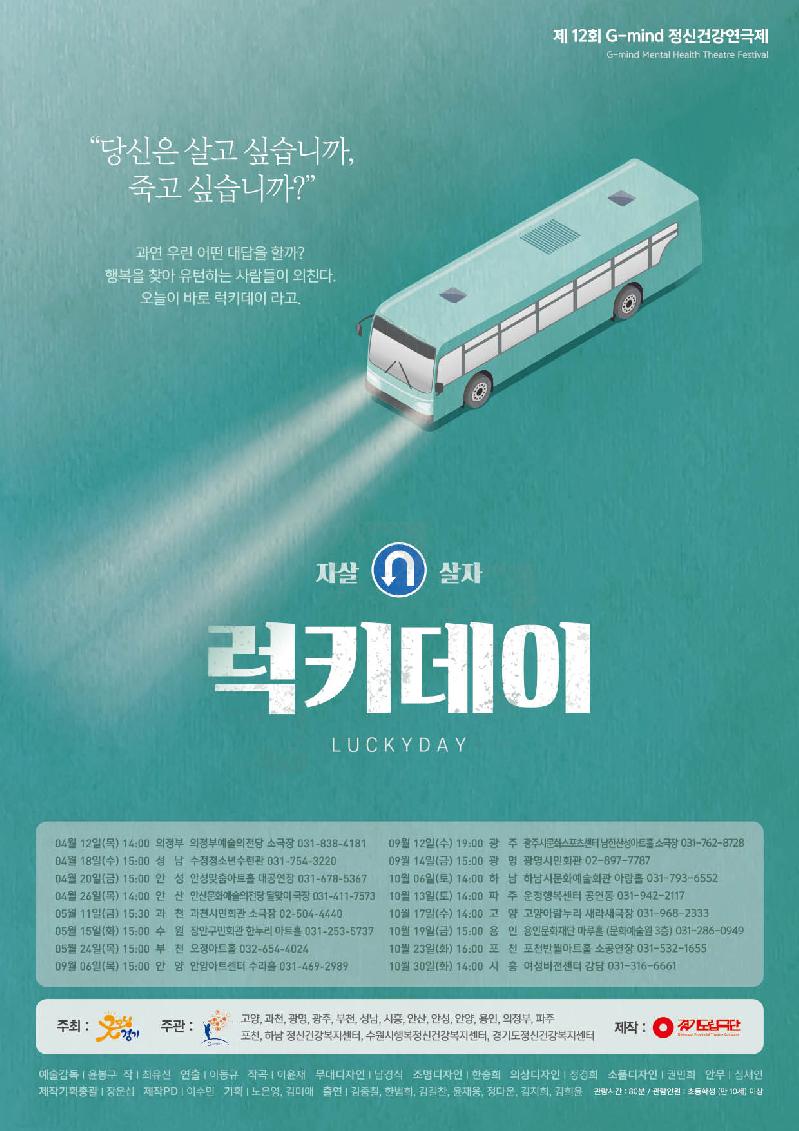 안양시(시장 최대호)는 9월 6일 안양아트센터 수리홀에서 G-mind 정신건강연극제‘럭키데이’공연을 개최한다.