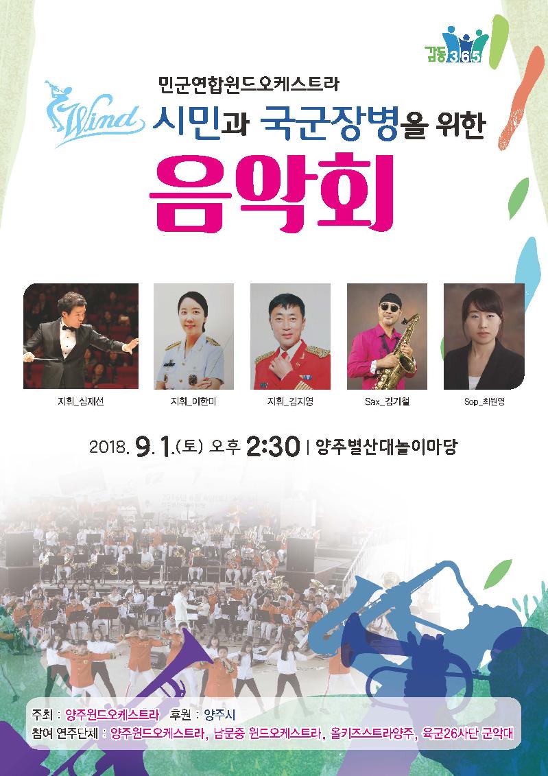 양주시(시장 이성호)는 오는 9월 1일 양주별산대놀이마당에서 민‧군연합 윈드오케스트라 ‘시민과 국군장병을 위한 음악회’를 개최한다.
