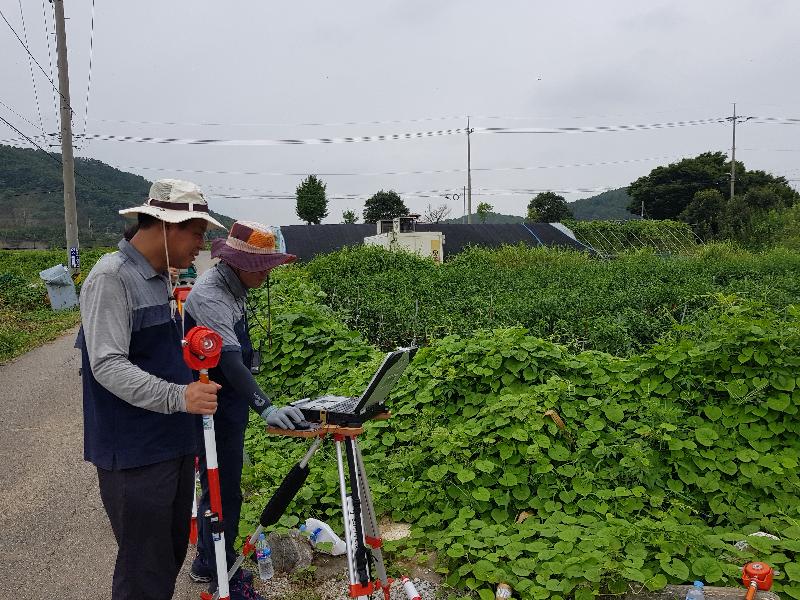 사업 완료까지는 1차 현황측량, 2차 임시경계점측량, 3차 경계확정측량을 거치게 되는데, 이번 현황측량은 그 첫 번째 측량으로 현장의 건물, 담장, 구조물 등을 GPS를 이용한 기준점을 활용해 최첨단 측량장비로 정밀 측량 하게 된다.