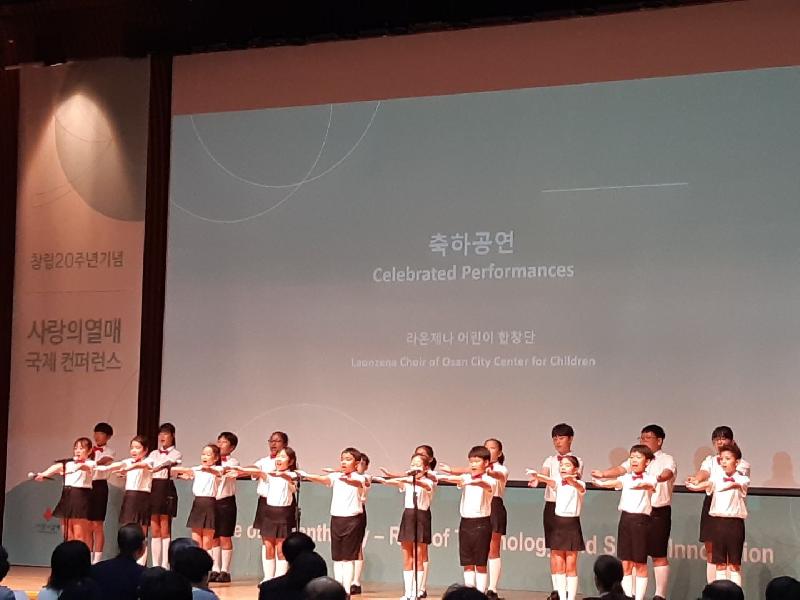 서울시청 본관에서 열린 사랑의 열매 창립 20주년기념 국제컨퍼런스(2018 ASIA-PACIFIC PHILANTHROPY SUMMIT)가 지난 30일 오산 시립 지역아동센터 “라온제나 합창단”(센터장 조순희)의 오프닝 공연으로 시작되었다.