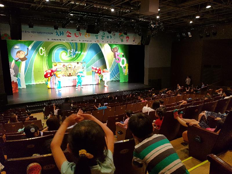 과천시 어린이급식관리지원센터는 지난 8월 30일과 31일 이틀간 총 3차례에 걸쳐 과천시민회관 대극장에서 관내 어린이집 원생 700여 명을 대상으로 어린이 위생교육 뮤지컬 ‘채소나라 콩콩이’를 공연했다.