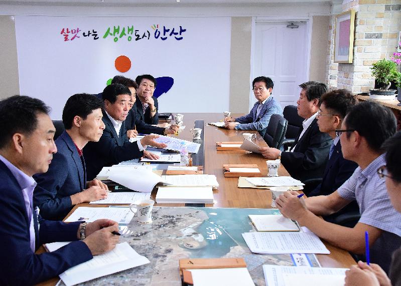 윤화섭 안산시장은 시화지구 대송단지 현안 사업 논의를 위해 지난 8월 30일 시장 집무실에서 최규성 한국농어촌공사 사장과 면담을 가졌다.