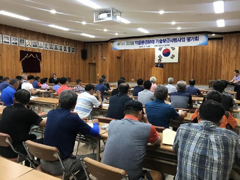 여주시농업기술센터(소장 김덕수)에서는 지난 8월 30일 농업인과 관계자 60여명이 참여한 가운데 2018년 작물환경분야 기술보급시범사업 평가회를 개최했다.