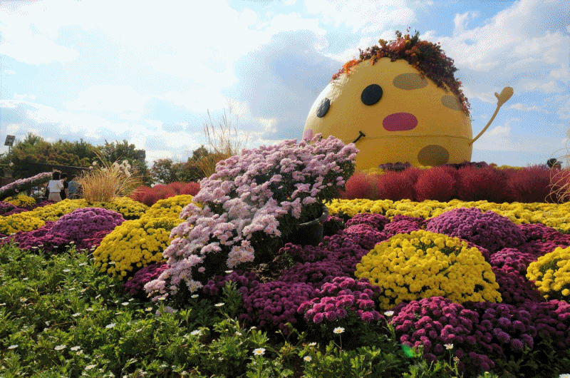 해바라기 가족이 반갑게 맞이하는 ‘한가위 정원’에서는 백조, 돌고래, 토끼 등 국화 조형작을 비롯해 보름달, 풍차, 대형 꽃벽, 소원 트리 등이 조성되어 풍요로운 추석, 행복한 가을을 만끽할 수 있다.