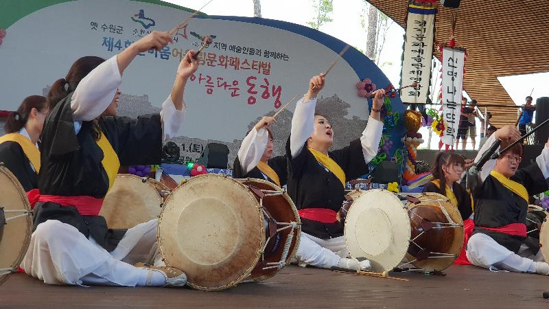 올해 축제에는 수원 10개 팀(148명), 화성 9개 팀(102명), 오산 6개 팀(84명) 등 25개 팀 334명의 민간 예술동호인이 참여해 풍물·댄스·난타 공연, 하모니카·색소폰·플루트 연주 등 국악과 양악이 어우러진 다채로운 공연을 선보였다.