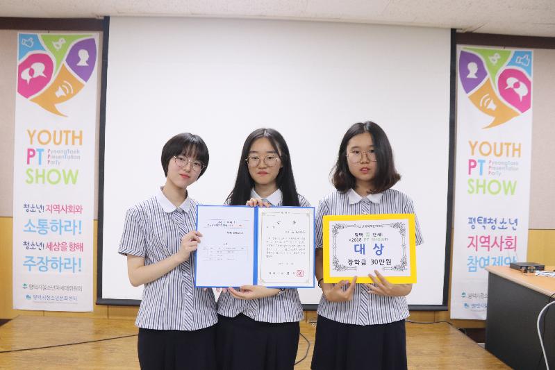 이번 대회에서 대상을 수상한 ‘SPEOPLE(허한나, 김민지, 정민선-현화고1)’은 ‘교복’을 주제로 청소년들이 입고 생활하는 교복의 불편함을 제시하고, ‘후드 교복’을 예시로 들며