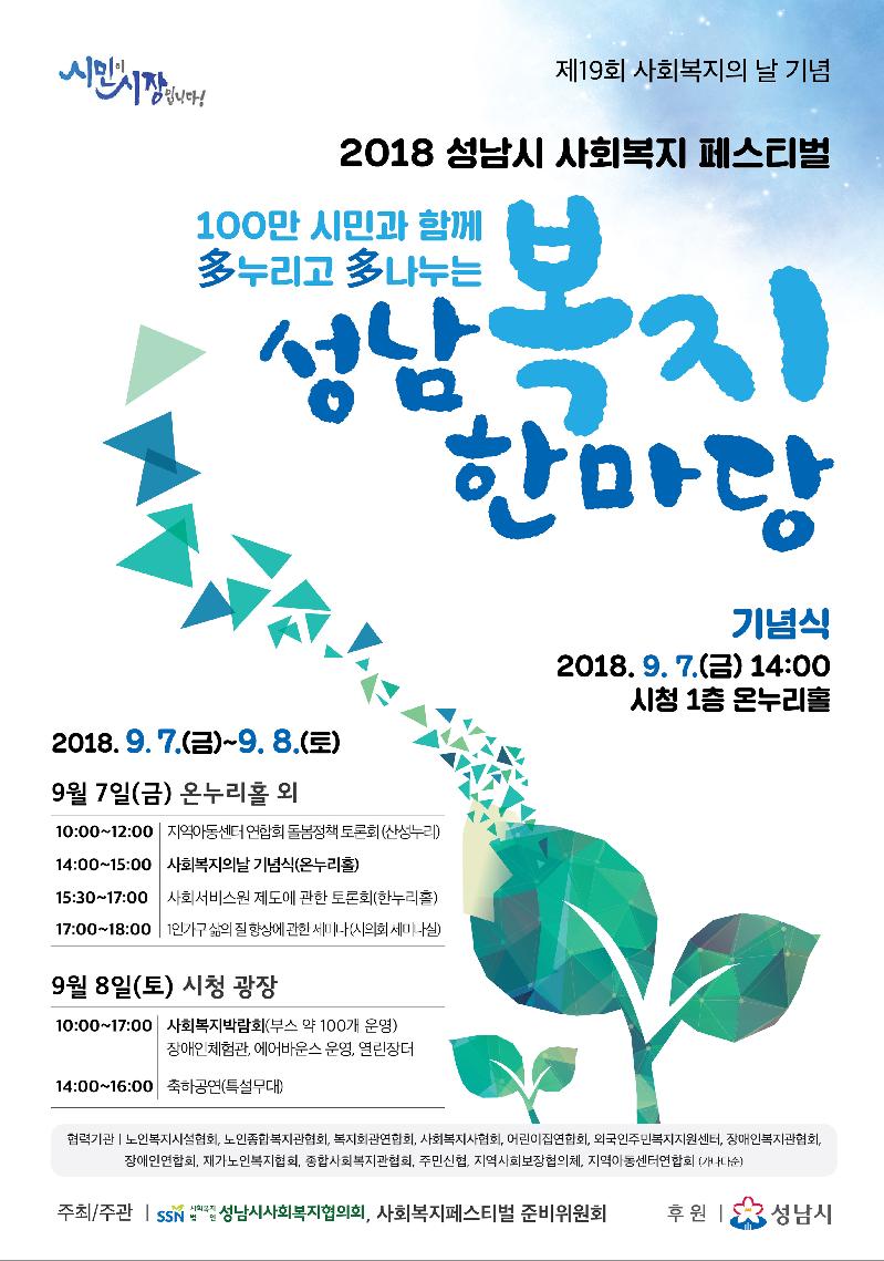 ‘제19회 사회복지의 날’을 기념한 페스티벌이 오는 9월 7일과 8일 성남시청에서 열린다.