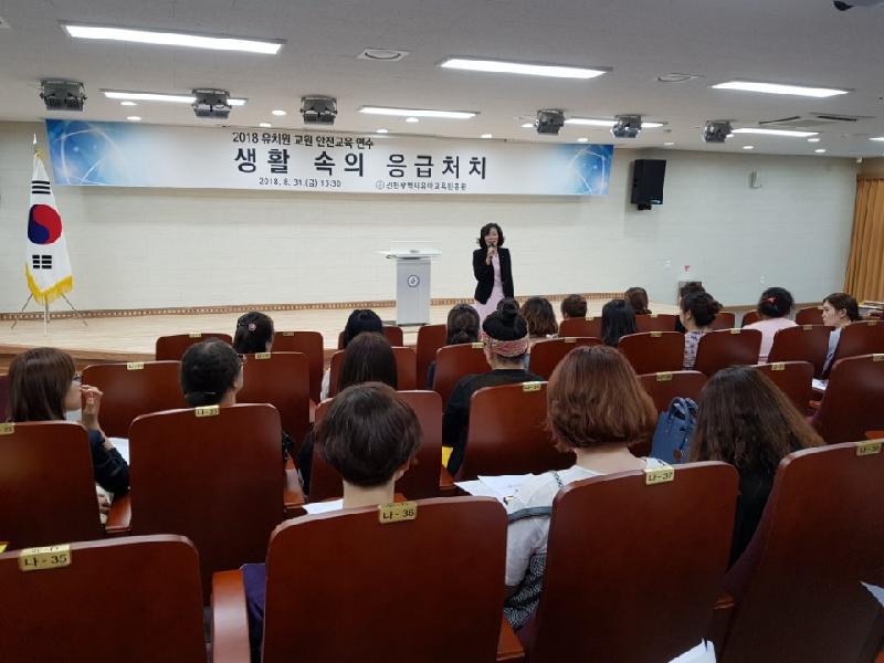 ‘생활 속의 응급처치’라는 주제로 진행된 이번 연수는 유치원 일과 속에서 빈번히 일어나는 안전사고 및 응급상황에 대한 안전교육 담당교원의 전문성을 신장시키는데 목적이 있다.