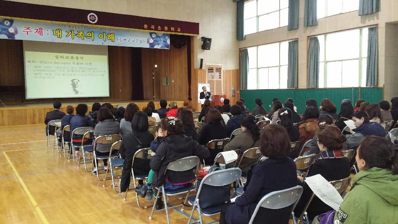 거제지역의 전 초등학교 학부모들을 대상으로 10시부터 실시된 학부모교육은 경남대학교 사범대학 교수인 김현구 교수가 초빙되어 "내 가족의 이해"라는 주제로 약 2시간 동안 이루어졌다.