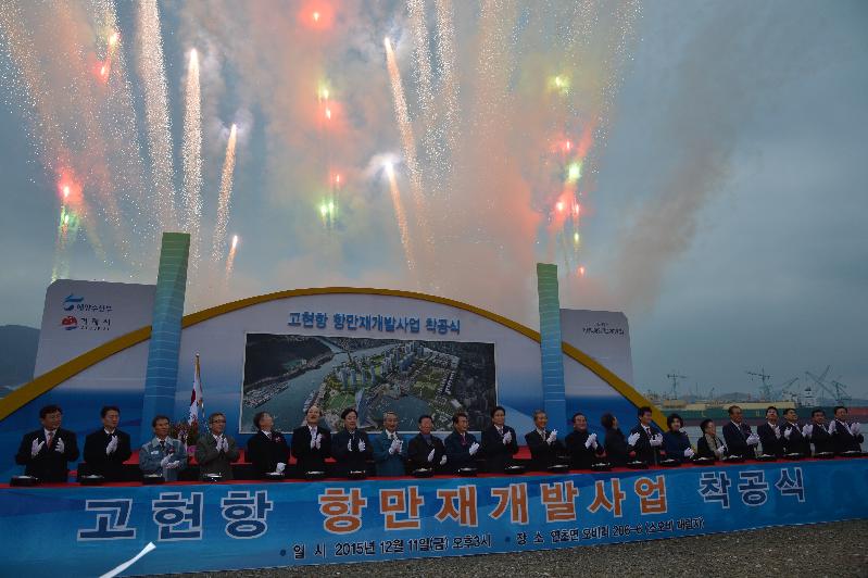 고현항 일대를 친환경적인 신도시로 변화시킬 고현항 항만재개발 사업이 시행사인 거제빅아일랜드PFV(주)와 해양수산부, 거제시 주관으로 지난 12월 11일 오후 3시 연초면 소오비 매립지에서 착공식을 가졌다.