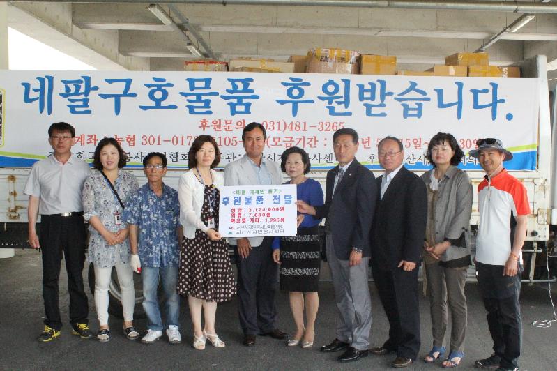 이번 후원품은 서산시 자원봉사단체협의회(공동대표 김학수, 한도현, 송희자)가 주관하여 1천여명의 자원봉사자들이 참여한 ‘네팔 이재민 돕기 자선바자회 행사’를 통하여 모금된 것으로 개인성금 및 국수판매 수익금 3,124,000원과 함께 전달됐다.