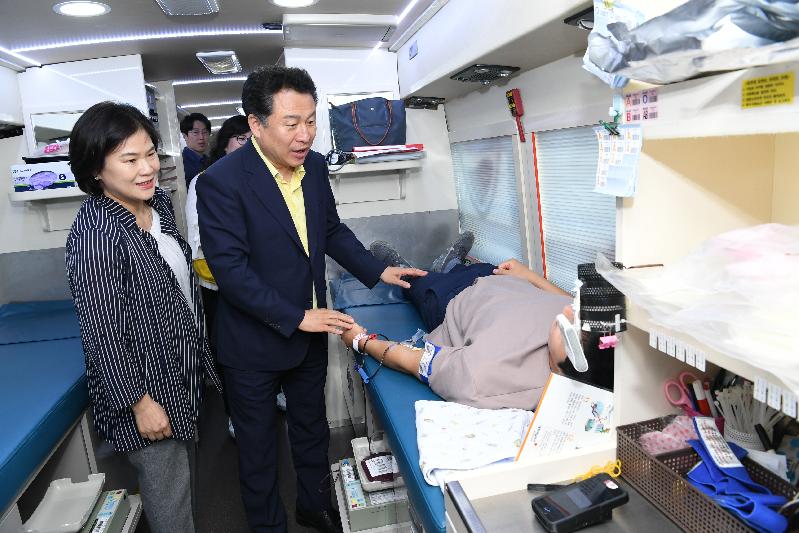 | 헌혈자들을 격려하는 안승남 구리시장. <사진=구리시청 제공> |