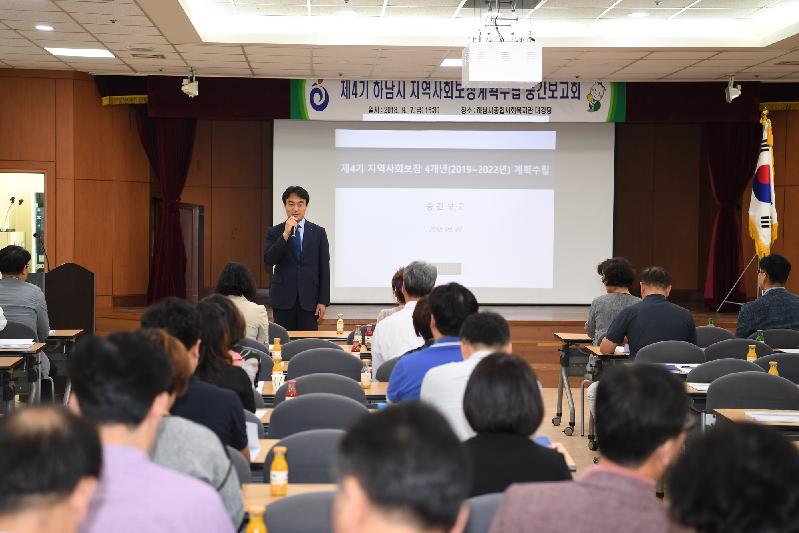 하남시(시장 김상호)는 지난 7일 하남시종합사회복지관에서 지역사회보장협의체 위원들, 지역사회보장계획수립 TF 구성원 등 100여명이 참여한 가운데 ‘제4기 지역사회보장계획수립 중간보고회’를 개최했다고 11일 밝혔다.