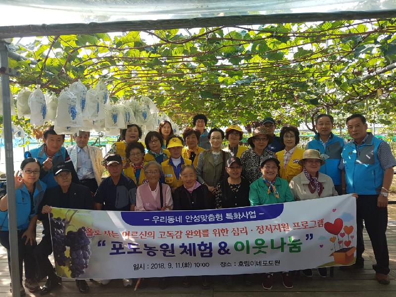 이 날 참여한 공도읍 지역사회보장협의체 위원들과 적십자 회원들은 1:1 결연을 맺은 어르신들과 함께 공도읍 소재의 호림이네 포도농원에서 알알이 풍성하게 익은 포도 열매들을 보면서 수확의 기쁨을 나누었으며 저마다 포도나무에 걸린 자신의 이름표를 보면서 그동안의 결실을 맺은 열매들을 맛보기도하고 수확의 기쁨을 나누며 웃음꽂을 피우기도 하였다. 이날 수확한 수확물 중 일부는 정성껏 포장하여 복지시설을 방문하여 위로하므로 더욱 뜻깊은 체험의 날이 되기도 하였다.