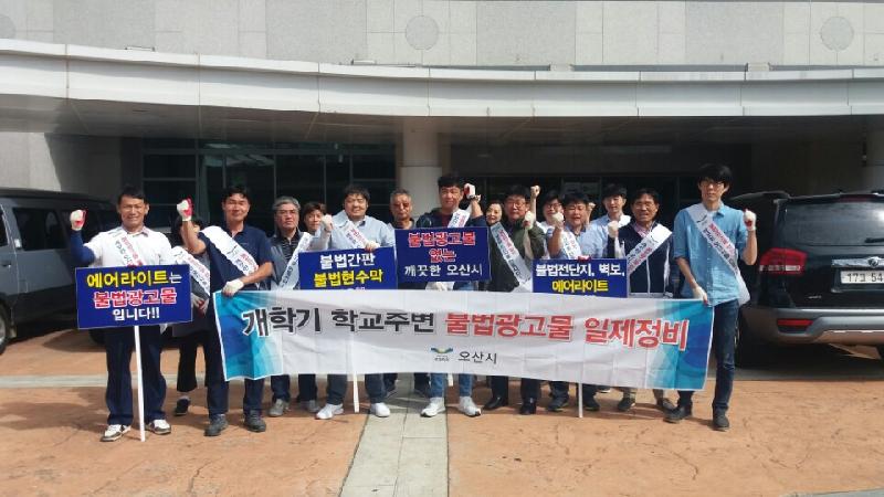 오산시(시장 곽상욱)는 지난 11일 개학기를 맞아 관내 학교주변 안전한 등하굣길 조성을 위해 경기도옥외광고협회 오산시지부 회원사 및 건축과 공무원 등 약 40여명으로 구성된 민·관 합동 개학기 안전점검 및 캠페인 활동을 전개하였다.