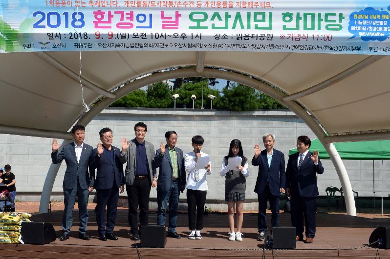 2부 행사에서는 2018년을 1회용품 사용줄이기 원년의 해로삼아 민·관·학 협력을 통해 1회용품 사용 줄이기에 적극 동참하자는 선포식을 개최하고 생태하천인 오산천에 외래종 물고기 퇴치활동으로 베스 낚시대회를 실시하여 베스 100여마리를 퇴치하고 자연보호 오산시협의에서는 오산천에 미꾸라지 5000마리를 방류하여 깨끗하고 청정한 하천을 만들고 환경보호에 대한 관심과 인식을 함께 할 수 있는 환경상식을 풀어가는 ‘환경 골든벨’이 열렸다.
