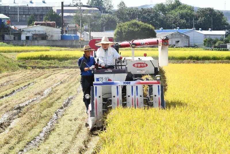 이날 행사에 참석한 이성호 시장은 농업인들과 함께 벼베기에 함께 참여해 콤바인을 직접 운전하는 등 농사일의 수고로움을 체험했다.
